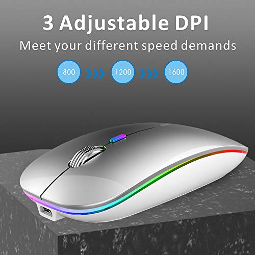 Uiosmuph G12 Mouse Wireless Ricaricabile, 2,4G Ultra Sottile Mouse Silenzioso Portatile Ottico Senza Fili con Nano Ricevitore e Tipo-c 3 DPI Regolabile per Notebook, PC, Laptop, MacBook (Argento)