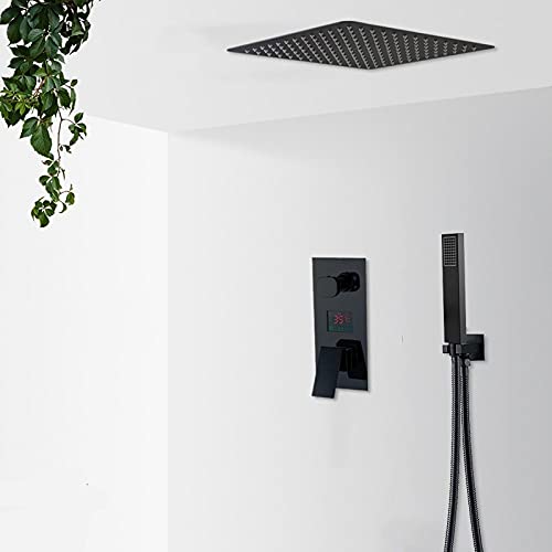 UIOXAIE Sistema Doccia Kit di rubinetti per Doccia a Cascata a Cascata Nera Opaca Kit Display Digitale LCD Sistema Doccia Set per Bagno Miscelatori Doccia a 2/3 Vie, 2 Vie 16 Pollici