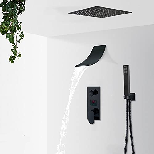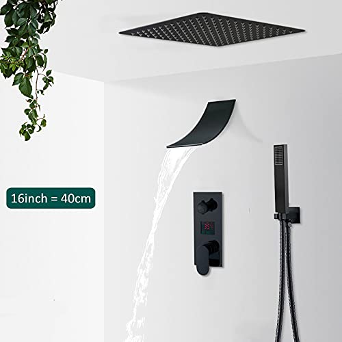 UIOXAIE Sistema Doccia Kit di rubinetti per Doccia a Cascata a Cascata Nera Opaca Kit Display Digitale LCD Sistema Doccia Set per Bagno Miscelatori per Doccia a 2/3 Vie, 3 Vie 16 Pollici a Cascata A