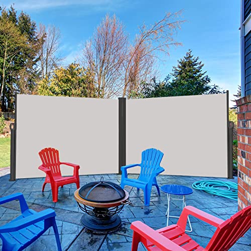 UISEBRT Doppia Tenda Laterale Avvolgibile per Balcone, Terrazza, Giardino, 160 x 600cm, Grigio