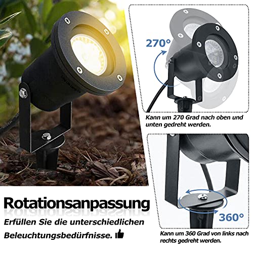 UISEBRT 6 faretti da giardino a LED da 3 W, con picchetto, luce bianca calda, impermeabili, IP65, per esterni, giardino, laghetto, paesaggio con spina (6 x 3 W bianco caldo)
