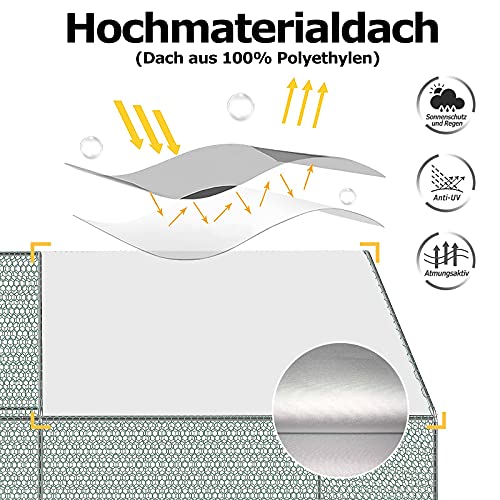 UISEBRT Pollaio per Esterni Piccoli - con Tetto in PE, Gabbia per Polli da Esterno in Acciaio Zincato per Pollame, Pollai, Conigli (3x2x2m)