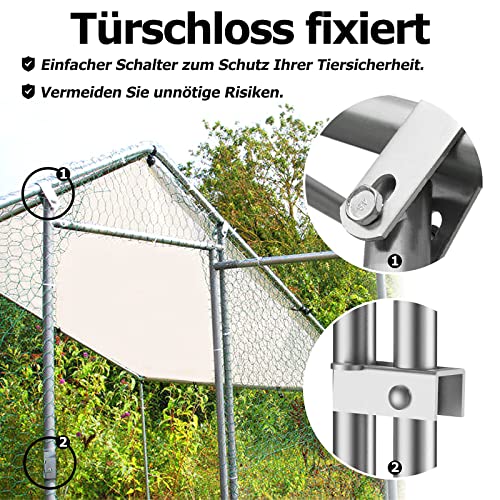 Area di recinzione sicura e confortevole - tieni gli animali all'interno, lascia che si esercitino e giochino in uno spazio sufficientemente ampio e previeni la fuga e altri incidenti. La porta è dotata di una serratura che ti permette di nutrire il pollame e pulire l'interno oltre a proteggere i tuoi animali