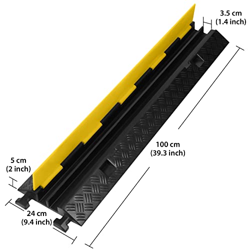 UISEBRT 2 ponticelli per pavimento, canalina per cavi modulare, in gomma, base a 2 canali, 100 x 24 x 5 cm, nero/giallo