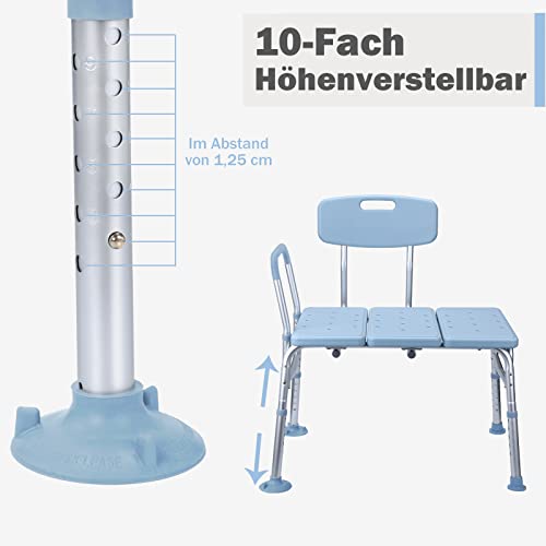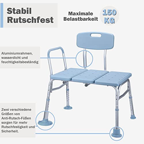 UISEBRT Sedia da bagno per anziani regolabile in altezza per vasca da bagno, sgabello da doccia con schienale e braccioli, antiscivolo, per vasca da bagno fino a 150 kg