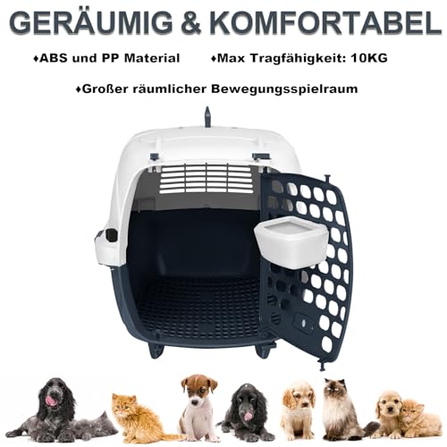 UISEBRT Trasportino per animali domestici - Box Trasporto per Cani Piccola Taglia e Gatti - Trasportino Gatto in ABS + PP - Portatile Gabbia portata fino a 10 kg - 60 x 37 x 37cm Grigio