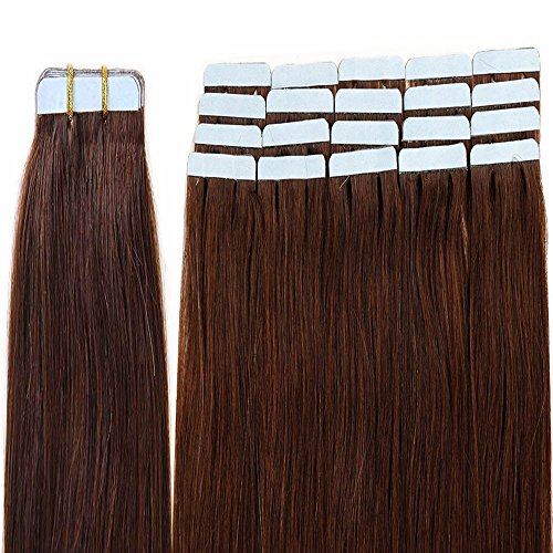 UK-Fashion-Shop Extension Biadesive Capelli Veri 100g 40 Fasce 04# Marrone Cioccolato 40cm 100% Remy Human Hair Umani Lisci Extension Capelli Veri Adesivo