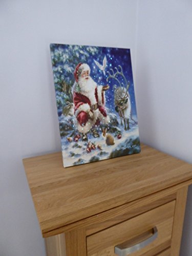 UK-Gardens Immagine Decorativa con Babbo Natale Che nutre la Renna, con luci LED a Batteria e Timer, Stampa su Tela, 40 x 30 cm