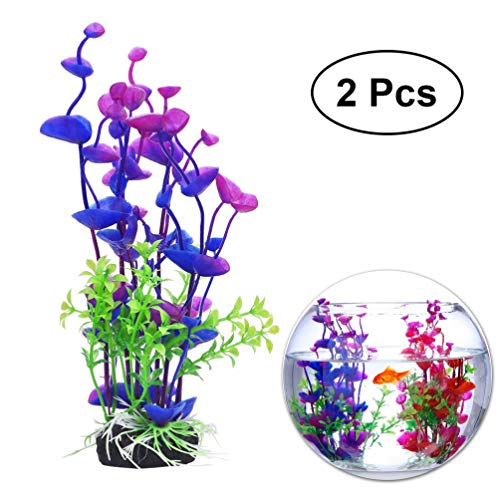 UKCOCO 2Pcs Piante Artificiali per Acquario, Pianta Sintetiche Erba Finta in Plastica Verde con Base per Acquario (Viola)
