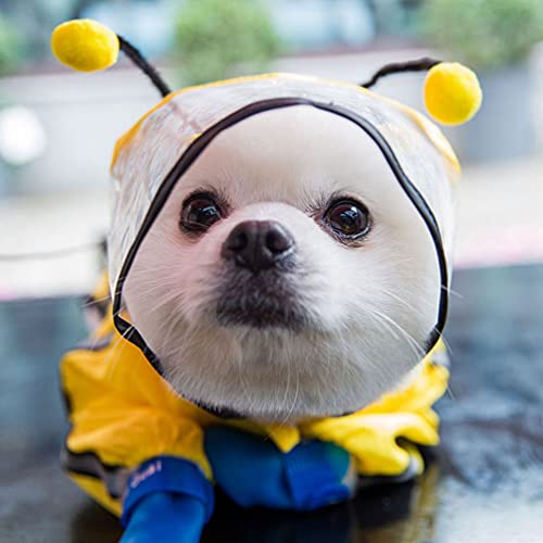 UKCOCO Pet Dog Impermeabile- Full Corpo Impermeabile con Cappello Trasparente Striscia Riflettente Cute Bee Forma Impermeabile per Cane di Piccola Taglia Medio