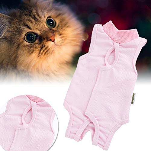 UKCOCO Tuta da Recupero per Gatti, Pulizia della Pelle Prevenzione Leccata, Dopo l'uso Chirurgico, Svezzamento e Mantenimento in Caldo per Gatti Animali Domestici - Taglia S (Rosa)