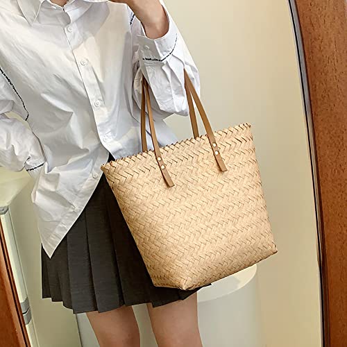 UKETO Borsa da donna in paglia di paglia da spiaggia, borsa a tracolla da donna, tessuto a mano, in rattan, borsa per la spesa per le vacanze in spiaggia, cachi, 39*30*13cm