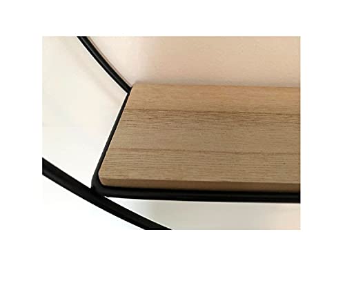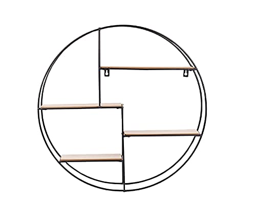 UKIYO Scaffale da parete rotondo in legno e metallo nero con 4 ripiani, 55 x 11 cm, per soggiorno, bagno