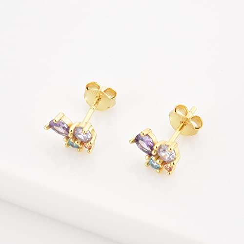 UKKO Orecchini a Bottone Sterling Silver Luxury Purple Blue Zircon Stud Earring Piercing Women Wedding Jewelry per Il Lusso-Gold Green