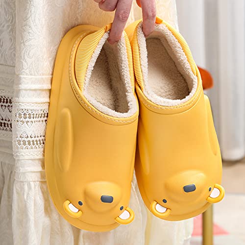 (Design di alta qualità) Tutte le pantofole invernali sono realizzate con materiali di alta qualità.La tecnologia di stampaggio integrata EVA in plastica in materia di gomma rende le scarpe ha una durezza ultra-alta.Con intercalatore di cotone denso e anelli morbidi, puoi camminare comodamente.Portare il vero calore ai piedi.