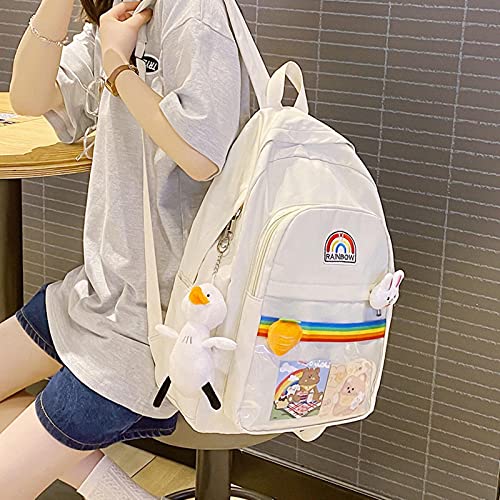 UKKO Zaino Summer Carino Candy Colour Zaino Teen Colore A Strisce Rainbow School Bag Studentessa Studentessa Borsa per Laptop di Grande capacità-Black,with Pendant