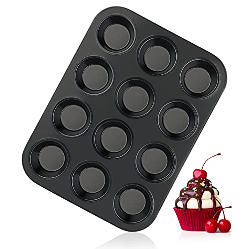 UKOFEW Teglia da Muffin, Teglia da Forno Antiaderente per Muffin, Teglia Antiaderente per Muffin, Nero Acciaio al Carbonio, per Cupcakes, Brownies, Torte, Budino