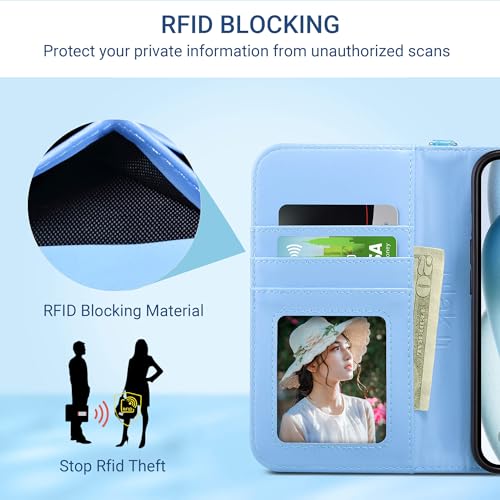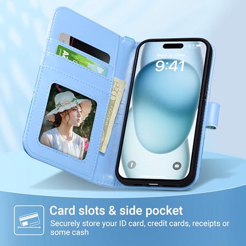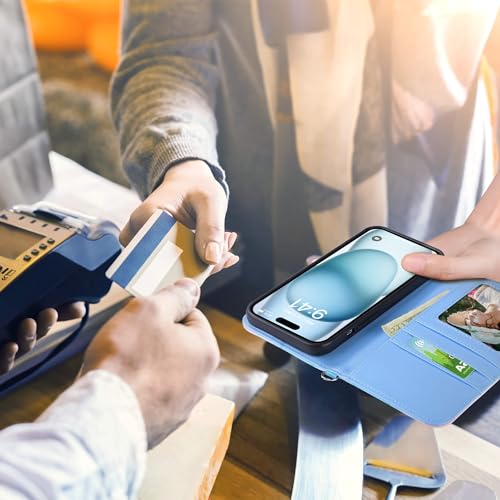 Ritaglio preciso: iphone 15 cover con porta carte ritagli precisi per la porta del connettore, altoparlanti, fotocamera e tutti i pulsanti sono di facile accesso e non è necessario rimuovere il coperchio