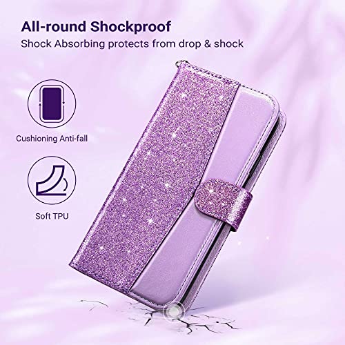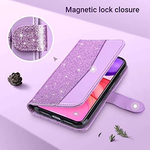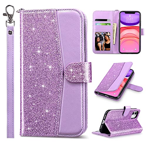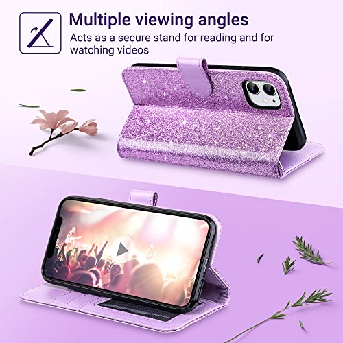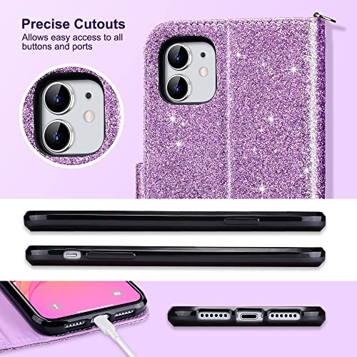 ULAK Cover Compatibile con Apple iPhone 11 con Porta Carte, Pelle Portafoglio Flip Libro Magnetica Cavalletto Custodia per iPhone 11 per Ragazze Donna (Viola Glitter)