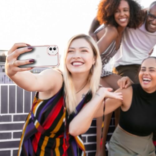 ULAK Cover iPhone 12/12 Pro, Trasparente Retro PC Rigido + Cornice di TPU Morbido Anti-Giallo Chiaro Protettiva Custodia per Compatibile con Apple iPhone 12 / 12Pro, Rosa
