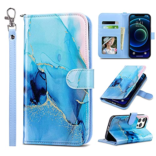 ULAK Cover iPhone 13 Pro Pelle Portafoglio, Custodia iPhone 13 Pro con Porta Carte Integrati Chiusura Magnetica Flip Cover Libro Compatibile con iPhone 13 PRO 6.1 Pollici, Blu