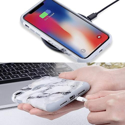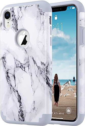 ULAK Cover iPhone XR 6.1 Pollice, Custodia Stampato Design PC+ Silicone Ibrido Impatto Grande Difensore Combo duro morbido Case per Apple iPhone Xr 2018, Marmo