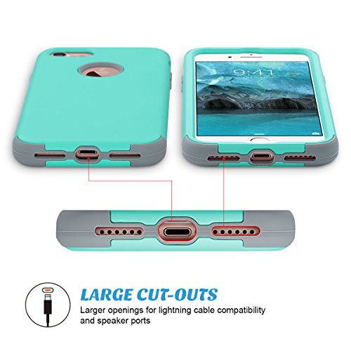 ULAK Custodia iPhone 7, iPhone 7 Cover Ibrida a 3 Strati in Silicone a Shell Super Protettiva Prova di collisione Case Cover per Apple iPhone 7 (4,7pollici) -(Mint + Grigio)
