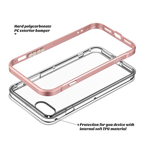 ULAK Custodia iPhone 7, iPhone 7 Cover Ultra Sottile Metallico Bumper Frame Trasparente TPU Silicone Case Cover per Apple iPhone 7 (4.7 Pollici) Protezione Ultralight Shell (Oro Rosa)