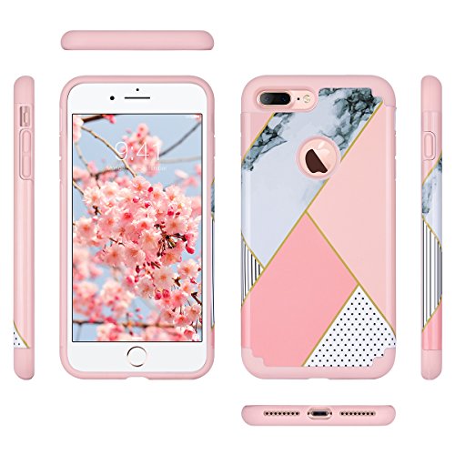 ULAK iPhone 7 Plus Cover, iPhone 7 Plus Custodia ibrida a protezione integrale con parte esterna in 2 strati di morbido silicone e interno rigido Case Cover per Apple iPhone 7 Plus (Oro Rosa Marmo)