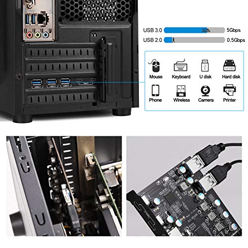 ULANSEN Scheda di espansione USB 3.0 a 7 porte PCI-E a tipo C (2), tipo A (5) con 2 porte USB 3.0 posteriori PCI Express Card PC desktop per Windows Mac Pro Linux