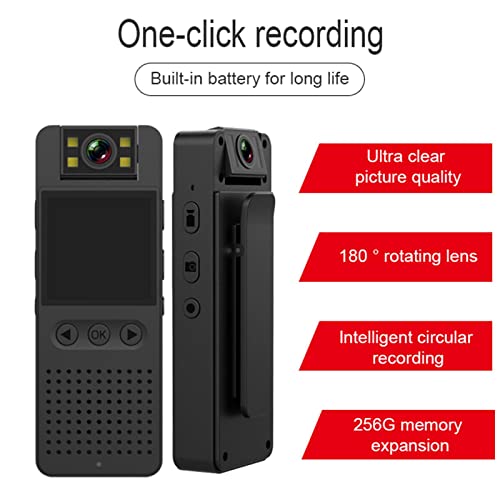 ☞[Obiettivo della fotocamera girevole] Indossabile e dotato di un obiettivo della fotocamera girevole, la fotocamera portatile per corpo ti aiuta a puntare la fotocamera verso l'oggetto registrato senza paura, perfetta per ciclismo, i verbali delle riunioni e l'uso familiare.