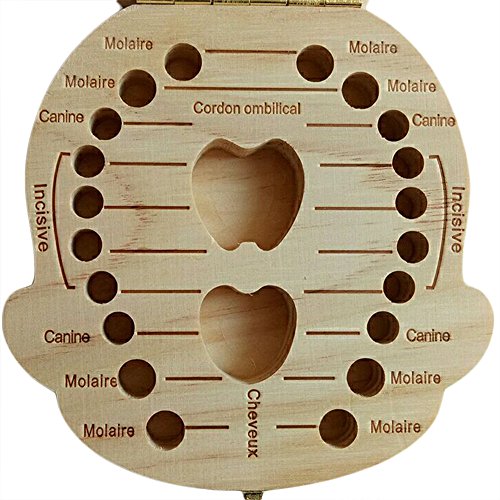 Ularma Organizzatore di scatola a denti i denti di latte di bambino salvano Cofanetto portaoggetti in legno per bambini ragazzo ragazza versione in Francese principessa