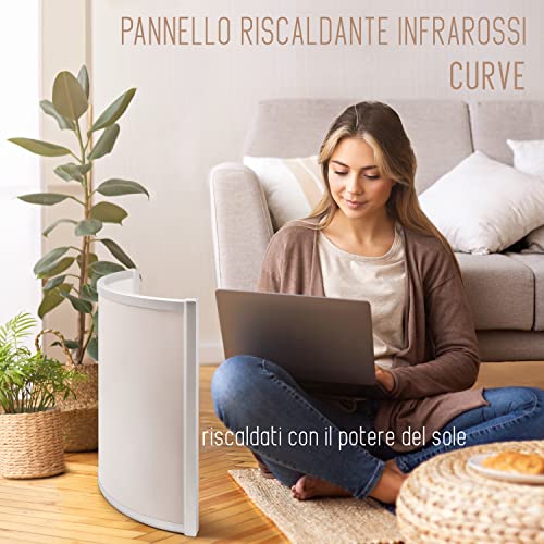 ULCANO Pannello Radiante Infrarossi a CRISTALLI di CARBONIO, CURVE, 300W 55x50 cm, Comfort Termico (non secca l'aria) Basso Consumo, Max Efficienza e Conversione Termica, ALLUMINIO, Mod. CURVE ECO PRO