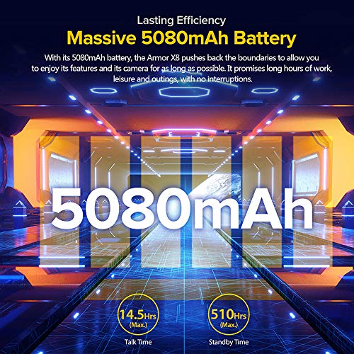 【Ampia batteria da 5080 mAh + ricarica rapida da 5 V / 2 A smartphone Robusto smartphone Ulefone Armor Pro con grande batteria da 5080 mAh e 72 ore in standby. Sia per l'uso quotidiano che per i giochi mobili, fornisce un output stabile e durevole. Una volta esaurita, l'alimentazione può essere ripristinata rapidamente utilizzando il caricabatterie rapido 5V / 2A. Ti dimenticherai in anticipo del tradizionale reclamo di caricamento lento.