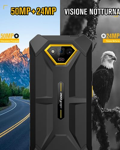 【50MP + 8MP Fotocamera】L'obiettivo da 50MP dell'Armor X13 cattura più luce, producendo immagini di qualità superiore con colori e dettagli straordinari, anche in condizioni di illuminazione difficili. La fotocamera frontale ha una risoluzione di 8 megapixel, consentendoti di catturare selfie casuali, videochiamate e altro con immagini nitide e i più piccoli dettagli.