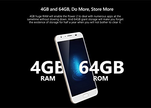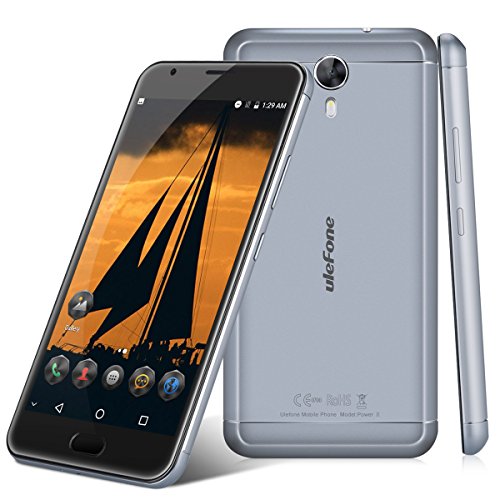 Ulefone Power 2 Smartphone 4G Android 7.0 (MT6750T 1.5GHz Octa Core, 5.5'' IPS HD Schermo, 4GB RAM 64GB ROM, 8MP+13MP Camera, Fingerprint ID, Dual SIM, HotKnot, Carica rapido, Super Power Saving Mode, 6050mAh ) Argento