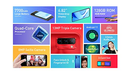 Ulefone 4G Smartphone Offerta NOTE 12, 4GB+128GB, 7700mAh Massiccia Batteria Cellulare DUAL SIM, Schermo HD+ 6,82'', Slot Per 3 Schede, Android 11 Go, Fotocamera Tripla 13MP, Sblocco Facciale Blu