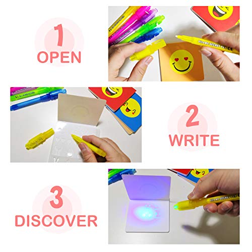GAGNEZ DU TEMPS ET DES IDÉES - Ensemble de stylos espion UV ULIFEME, il vous suffit d'un achat, vous obtiendrez un excellent cadeau pour les enfants, 16 stylos à encre invisible + 8 pcs petit cahier + 8 pochoirs différents modèles.