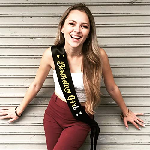 Ulikee Fascia da ragazza di compleanno, fascia nera in raso morbido con lamina d'oro per festa di compleanno per 10 ° 16 ° 18 ° 21 ° 30 ° compleanno forniture (fascia da ragazza di compleanno 1)