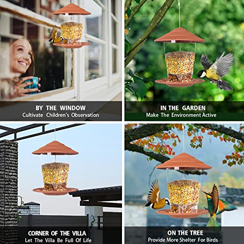 Facile da Riempire - Il design del contenitore trasparente ti consente di sapere quando ricaricare il mangime. Quando gli uccelli abitano e si nutrono di semi, puoi guardare gli uccelli dalla finestra, dal balcone o dal tetto.
