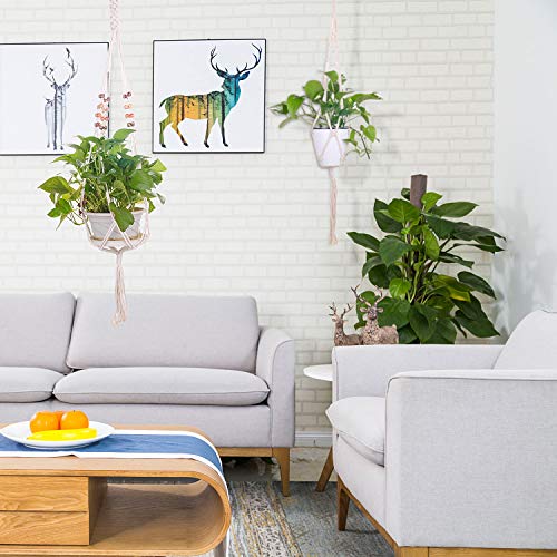 Ulikey 4 Pezzi Fioriere Sospese in Macrame da Interno ed Esterno, Corda a Forma di Vaso, Appendiabiti per Piante Macrame, Plant titolari, Piante Sospese Plant Hangers - 108cm