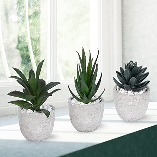 Ulikey 3 Pezzi Piante Grasse Finte Artificiali Succulente con Vaso, Decorative con Pietre, Bianco