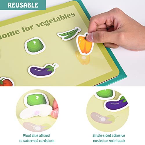 Ulikey Quiet Book, Montessori Libro Tranquillo, Gioco Cervello Libro di Puzzle, Giocattoli Sensoriali di Bambini Autismo, Giocattoli Educativi per Bambini dai 3 Anni in su, Riutilizzabile (Verdura)