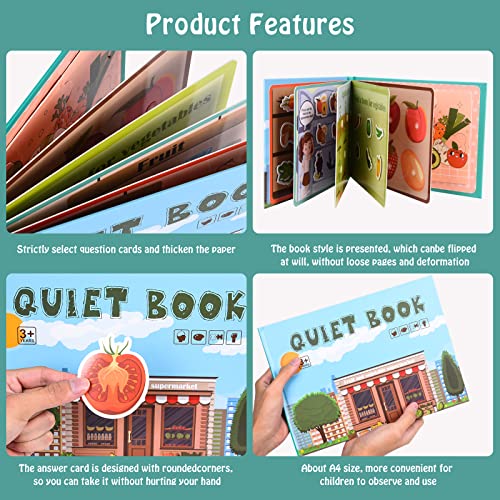 【Materiale di Alta Qualità】Il libro di apprendimento per bambini è realizzato in cartone di alta qualità, impermeabile, resistente agli strappi e facile da trasportare, che lo rende ideale come giocattolo da viaggio. I bordi di libri e piccole mappe sono lisci, quindi i genitori non devono preoccuparsi di graffiare le mani dei bambini.