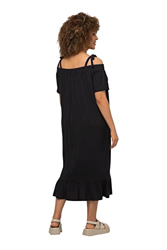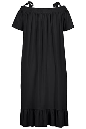Ulla Popken Abito Midi con Volant, Linea A, Scollo a carme, Mezza Manica Vestito, Black Beauty (Colore di Ricambio), 60 IT Donna