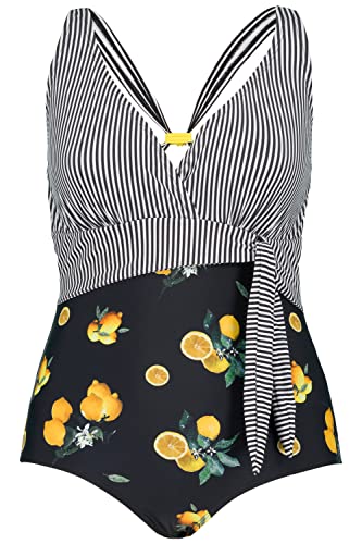 Ulla Popken Badeanzug, Neckholder, Streifen, Zitronen, Softcups Costumi da Bagno, Black Beauty (Ersatzfarbe), 56 Donna