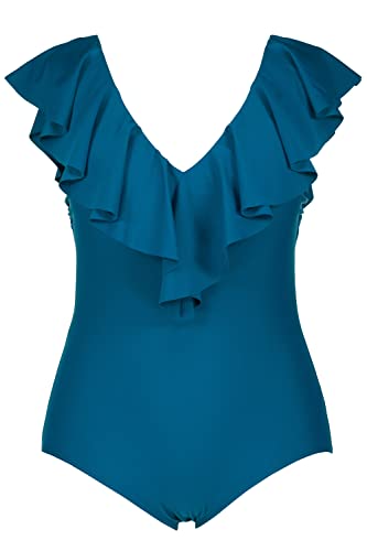 ULLA POPKEN Badeanzug, Volant, V-Ausschnitt, Softcups Costume Intero, karibikgrün, 60 Donna