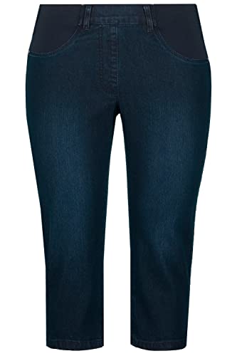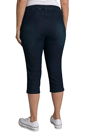 Ulla Popken Capri, a Righe, Elastico in Vita, Blu Jeans Scuro, 45W / 32L Donna