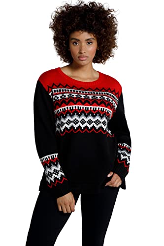ULLA POPKEN Norweger-Strickpullover, U-Boot-Ausschnitt, Langarm Maglione, Allarme Scarlet, 60 Donna
