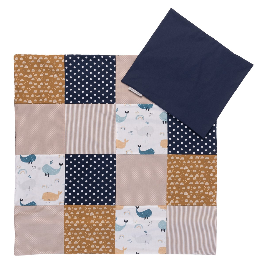Dettagli del prodotto: Piumino con cerniera sul retro Zip in plastica, a scomparsa e senza maniglia di scorrimento per un maggiore comfort Federa con chiusura a hotel sul retro Retro in tessuto a tinta unita con piccoli pois Materiale e cura: Materiale: 100% cotone Lavabile fino a 40°C Tessuto di cotone certificato secondo lo standard OEKO-TEX®, classe di prodotto I Il cotone è testato per le sostanze nocive e l'antiallergia. Dimensioni e peso: Dimensioni: 80 x 80 cm, 30 x 40 cm Peso: 260 g Incluso nella consegna: 1 set di coperta e federa per bambino